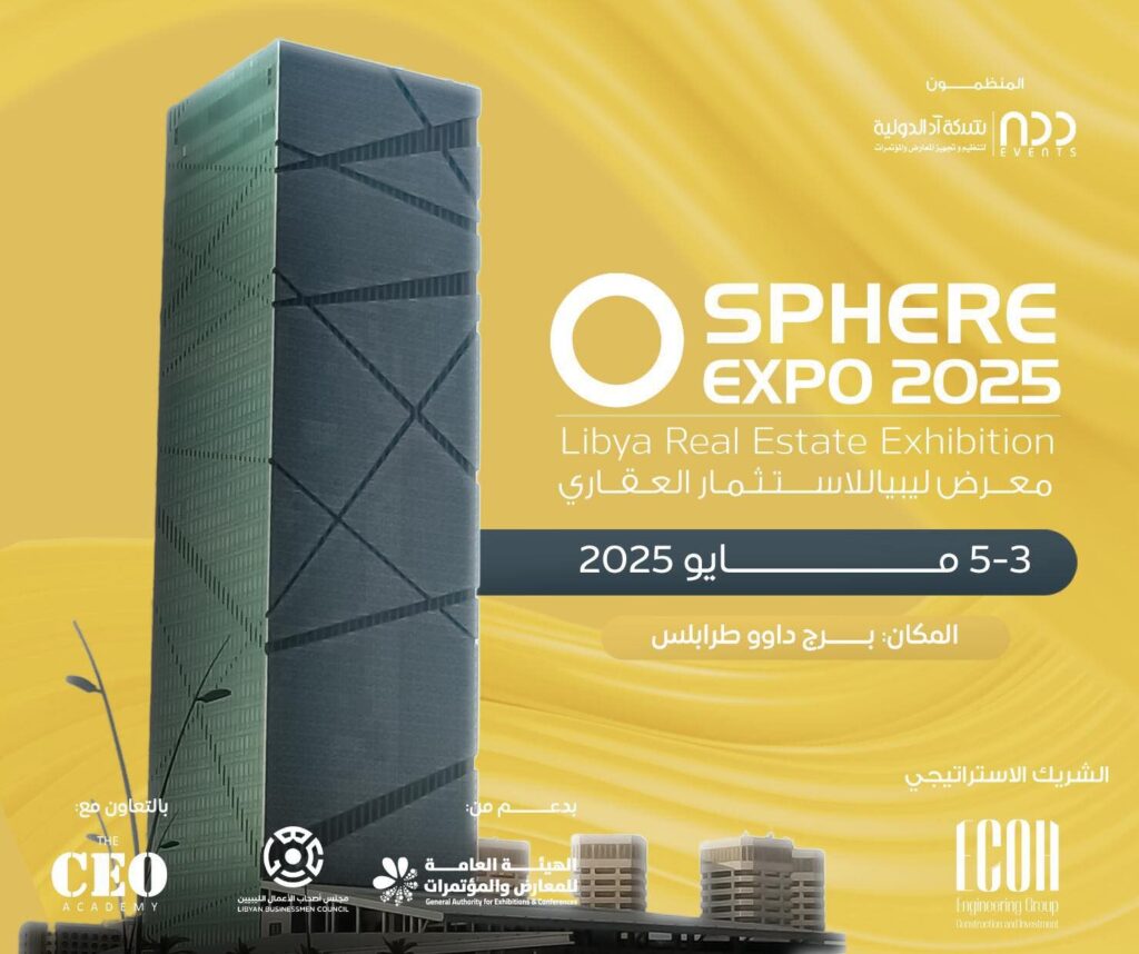 Tripoli – La capitale libica si prepara ad accogliere uno degli eventi più attesi nel settore dello sviluppo urbano e degli investimenti immobiliari: la Libya Real Estate Investment Exhibition 2025, conosciuta come “Sphere Expo”, che si terrà dal 3 al 5 maggio presso il centro fieristico di Tripoli.